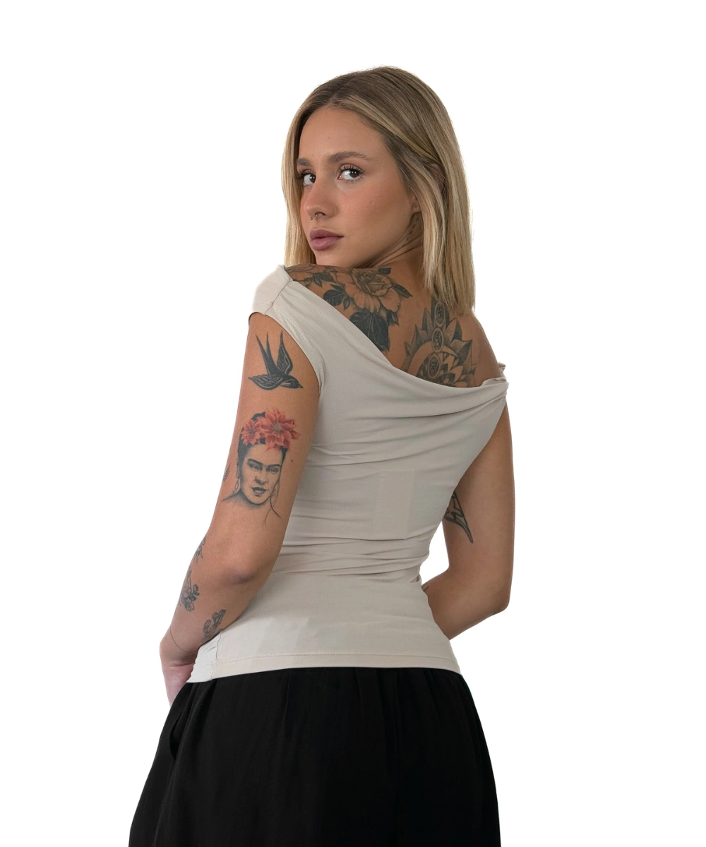 Blusa com decote assimétrico: um dos ombros torcidinho, detalhe que faz toda a diferença, super charmoso e estiloso! <3